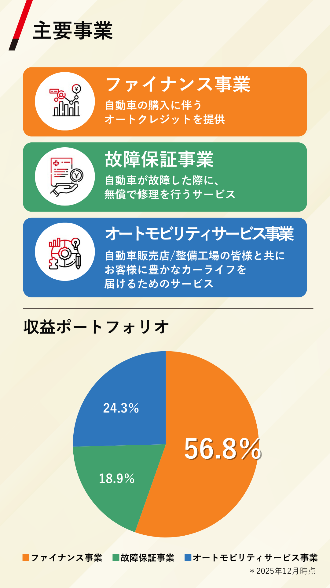 主に自動車購入に伴うオートクレジットを提供しています。